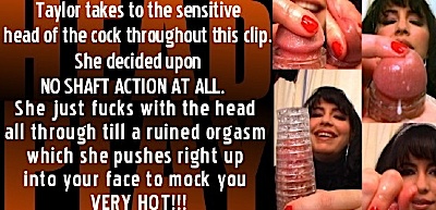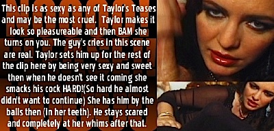 Taylor does a very sexy handjob with no clues given that she intends to completely ruin the orgasm in a sudden and violent fashion. A great 2 camera angle clip presented in FULL SCREEN RESOLUTION!